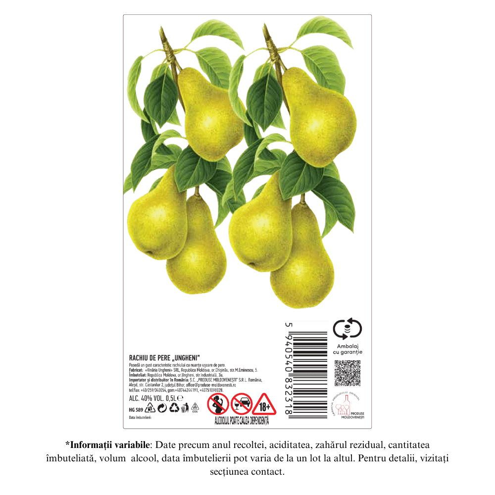 UNGHENI Rachiu de Pere 40% 0,5L