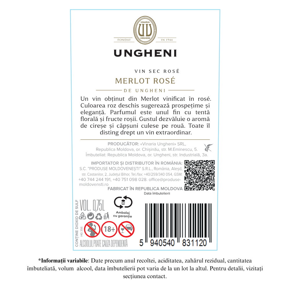 Vin UNGHENI Bridge Merlot Rose Sec 0,75L