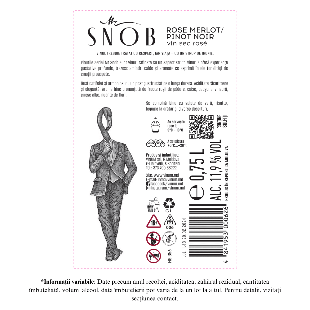 Vin Rose Sec, Mr Snob, Merlot – Pinot Noir, Vinum, 0.75L