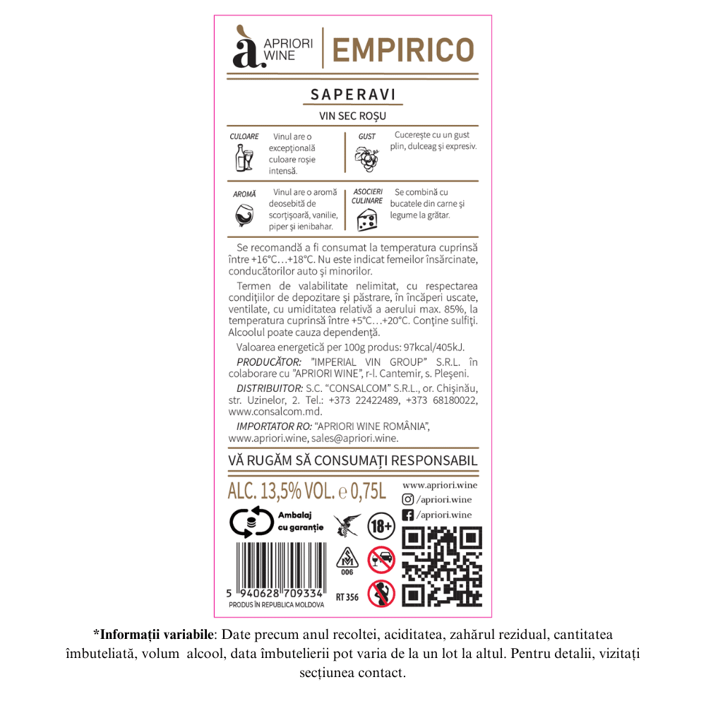 Vin rosu sec Apriori Empirico Saperavi 0.75L