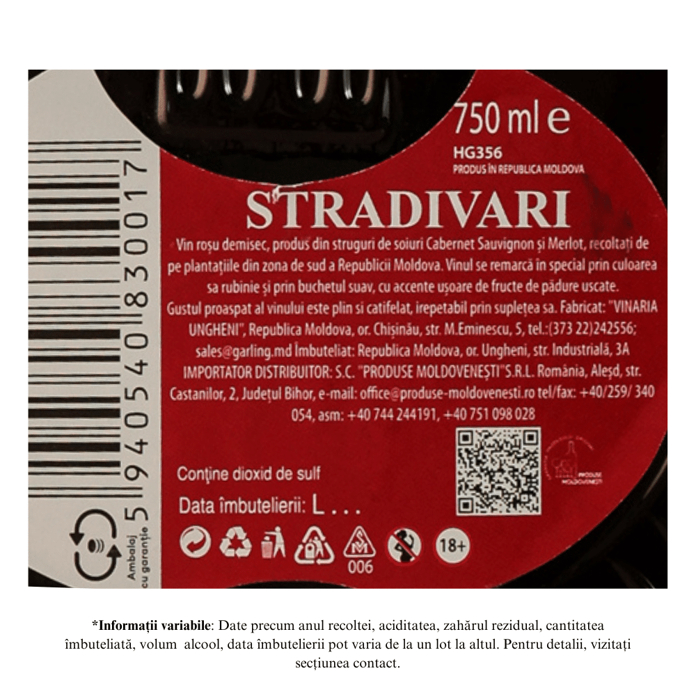Vin UNGHENI Stradivari Rosu Demisec 0,75 L